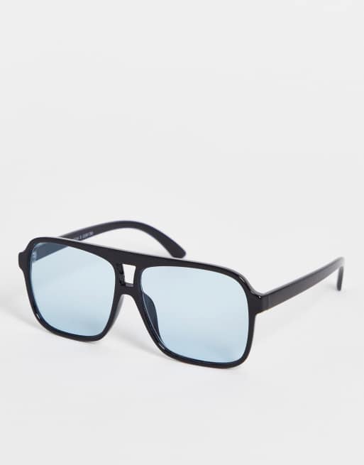 Monki - Occhiali da sole oversize neri con lenti blu