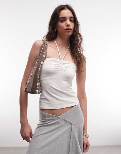 Monki - Top a fascia 2-in-1 allacciato al collo bianco