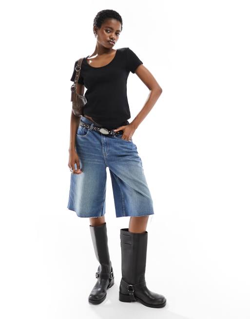 Monki - Top a maniche corte nero con scollo rotondo