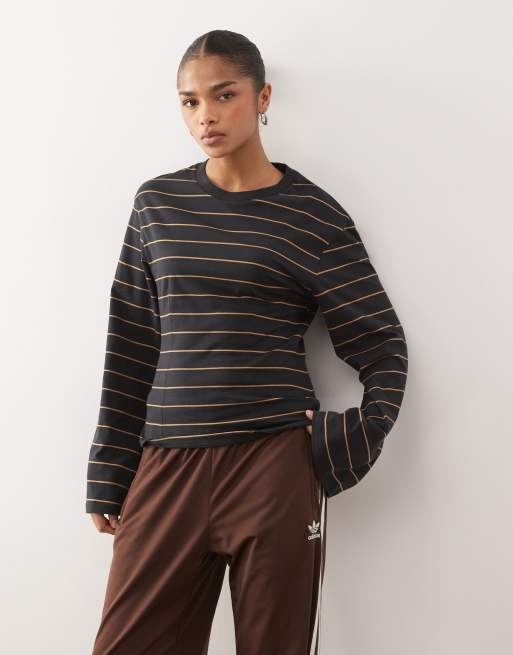 Monki - Top a maniche lunghe strutturato in jersey nero a righe stretto in vita