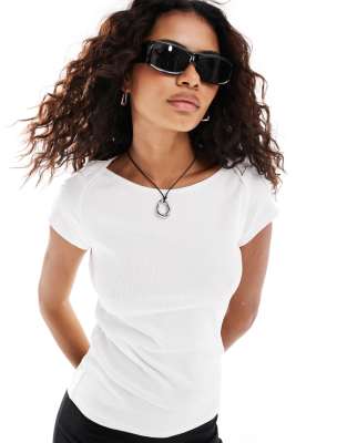 Monki - Top attillato bianco a maniche corte con scollo a barchetta