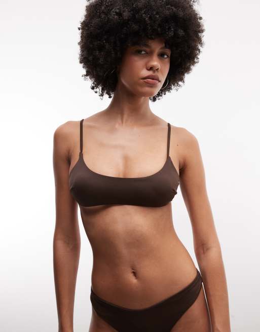 Monki - Top bikini color cioccolato con scollo rotondo e allacciatura sul retro