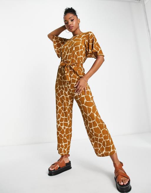 Monki - Tuta jumpsuit comoda allacciata in vita con stampa effetto giraffa