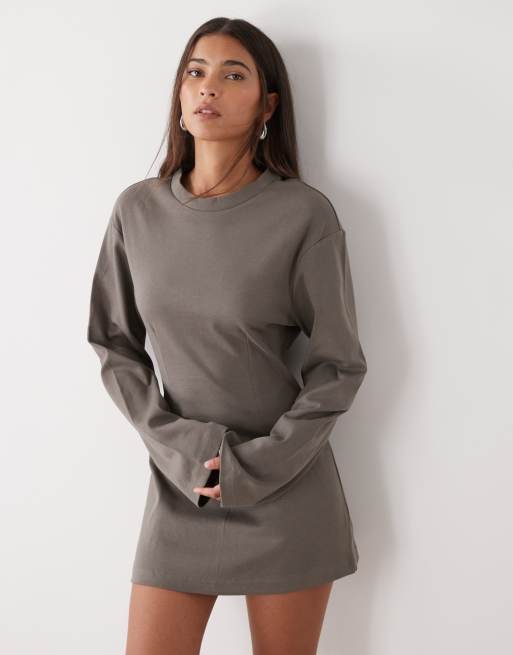 Monki - Vestito corto a maniche lunghe stretto in vita kaki