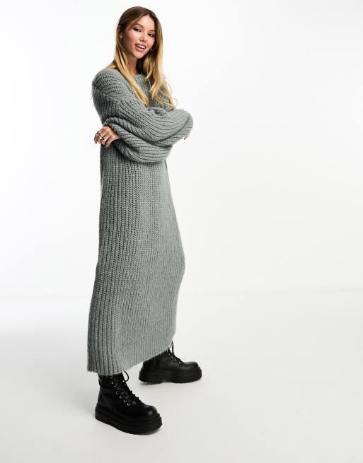Monki - Vestito maglia midi oversize grigio testurizzato