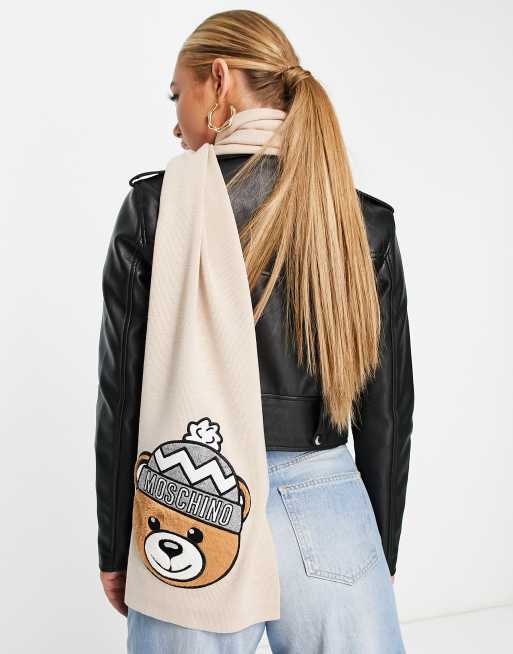Moschino - Teddy - Sciarpa color sabbia con logo