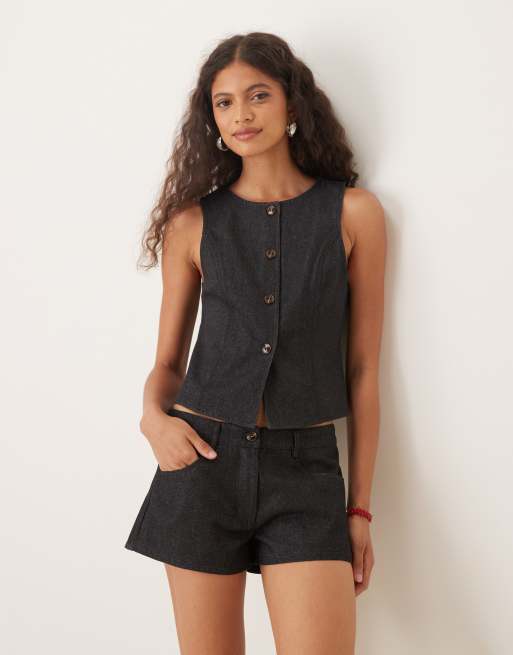 Motel - Anila - Canotta in denim color indaco con bottoni