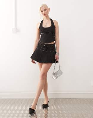 Motel - Gatlin - Minigonna a pieghe nero slavato con borchie in coordinato
