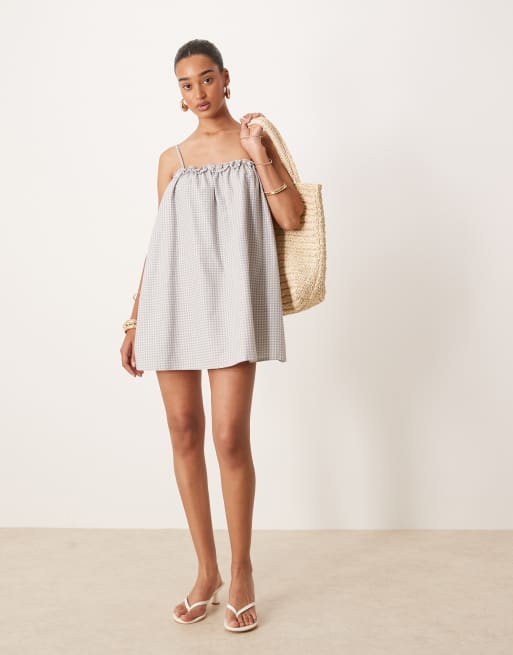 Motel - Kamalani - Vestito grembiule corto blu e grigio a quadretti