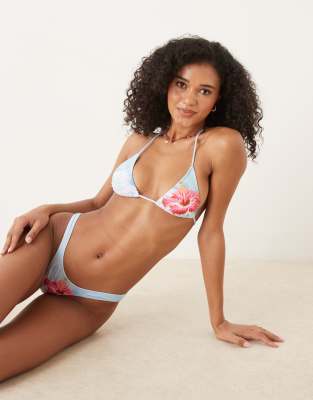 Motel - Pami - Top bikini a triangolo blu con stampa di onde e ibisco