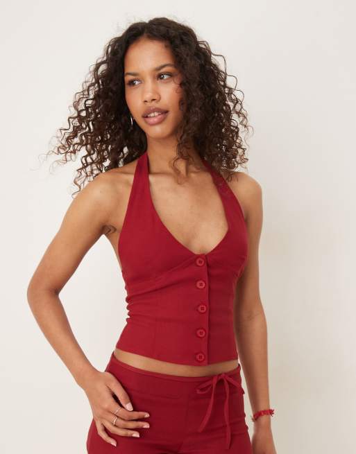 Motel - Pantaloncini sartoriali rossi a vita bassa con cintura