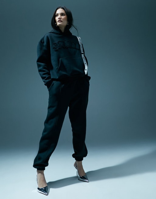 Murci - Coordinato con felpa con cappuccio oversize con scritta "Saint" e joggers nero slavato