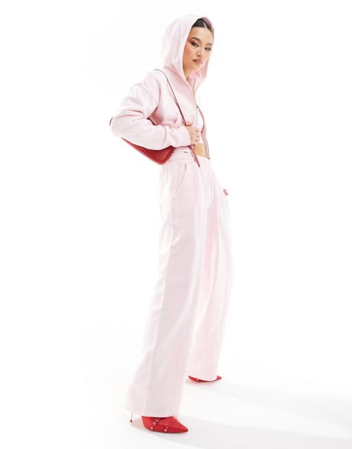 Murci - Coordinato rosa con felpa corta con cappuccio e joggers a fondo ampio