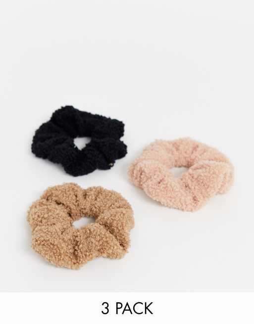 Esclusiva My Accessories London - Confezione da 3 elastici per capelli in pile borg