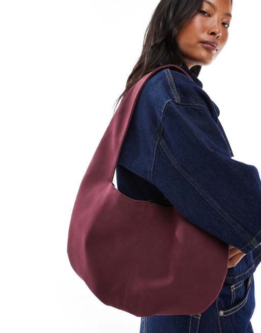 My Accessories - Borsa da spalla in camoscio sintetico bordeaux morbida arrotondata