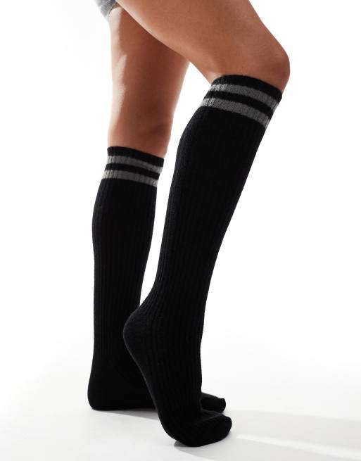 My Accessories - Calzini sotto il ginocchio neri e grigi a righe
