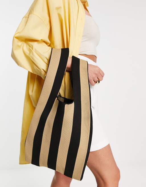 My Accessories London - Borsetta da shopping a righe nere e beige