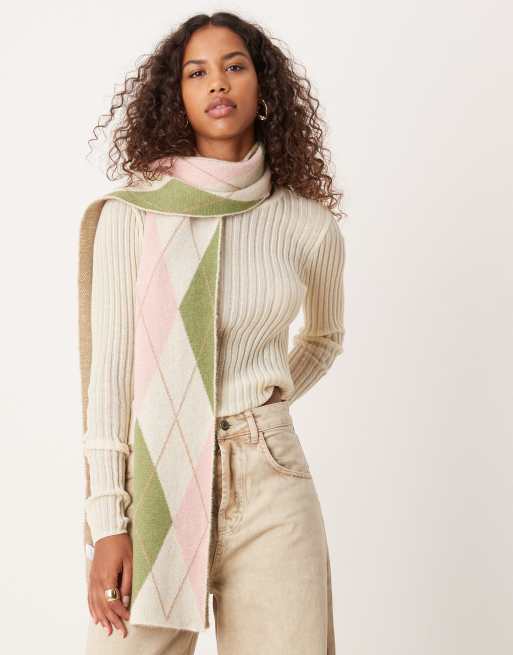 My Accessories - Sciarpa a rombi crema, rosa e verdi