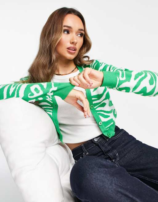 NA-KD - Cardigan corto jacquard verde e bianco