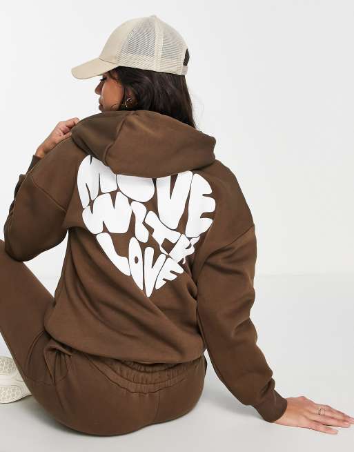 NA-KD - Felpa marrone con cappuccio e scritta "Move With Love" in coordinato