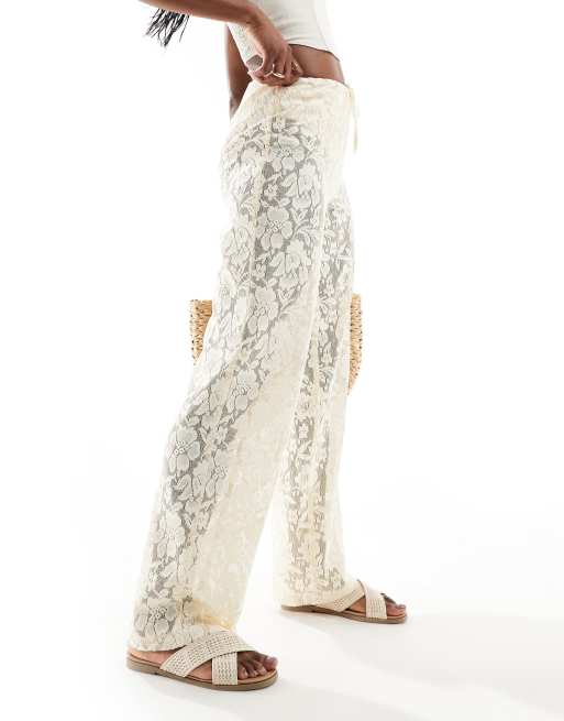 NA-KD - Pantaloni in pizzo bianchi