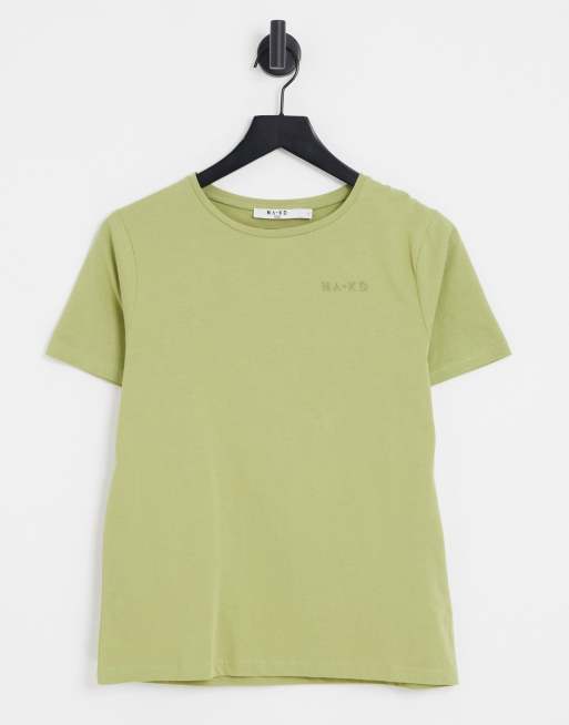 NA-KD - T-shirt in cotone verde salvia con logo - LGREEN