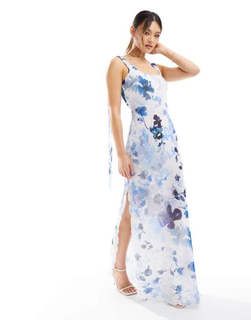 NA-KD - Vestito lungo con stampa blu e fondo con volant