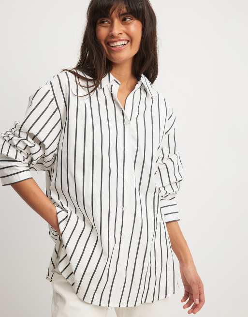 NA-KD x Laura Jane Stone - Camicia oversize nera e bianca a righe con polsini alti