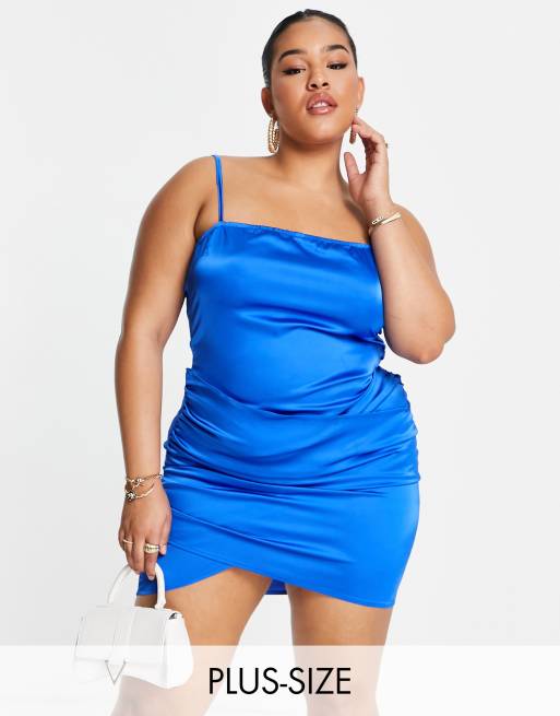 NaaNaa Plus - Vestitino in raso blu cobalto con incrocio