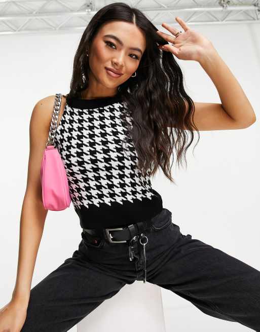 NaaNaa - Crop top in maglia con motivo pied de poule e scollo a vogatore