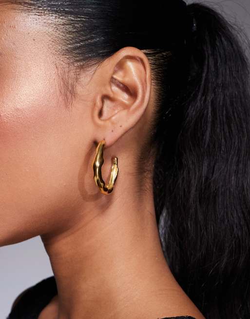 Neck on the Line - Orecchini a cerchio placcati oro effetto metallo fuso