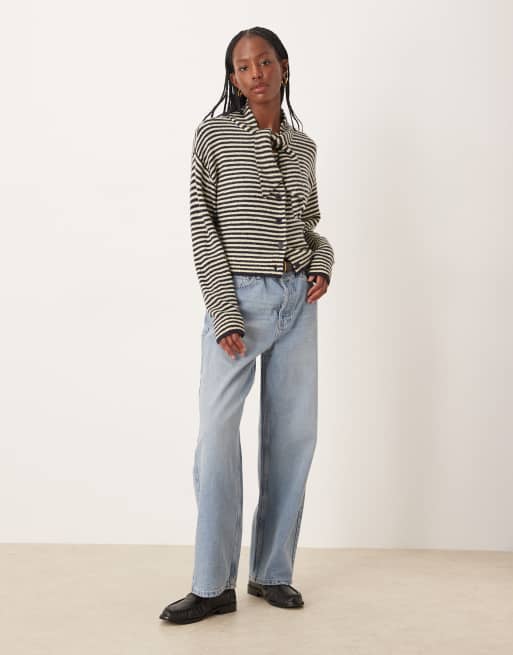 Neon Rose - Cardigan a righe giallo latticello e navy con laccio