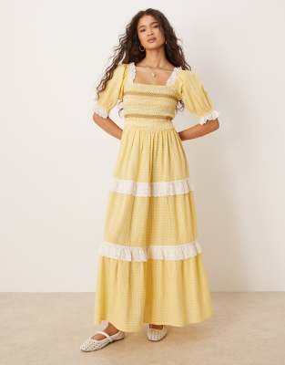 Neon Rose - Vestito giallo a quadretti con maniche a sbuffo e gonna al polpaccio