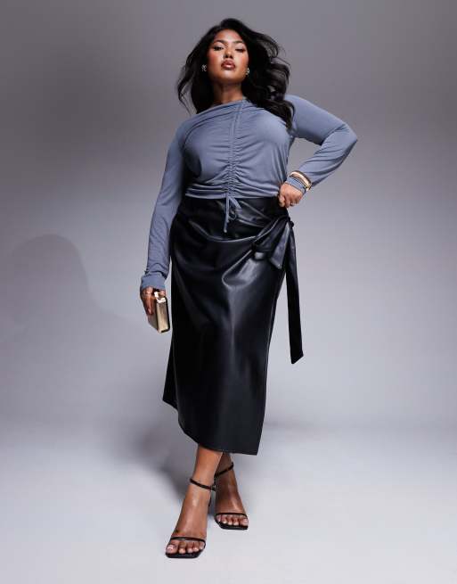 Never Fully Dressed Plus - Gonna midi nera in pelle sintetica a portafoglio