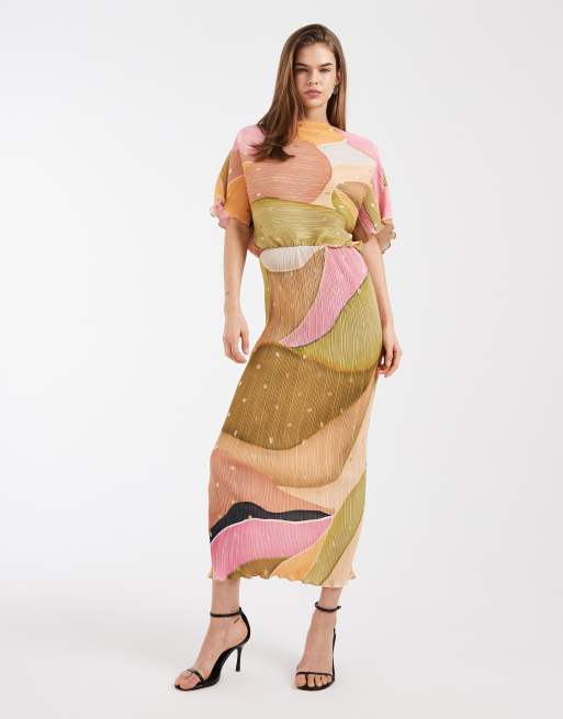 Never Fully Dressed - Tilly - Vestito lungo plissé con spalle scoperte stampa astratta