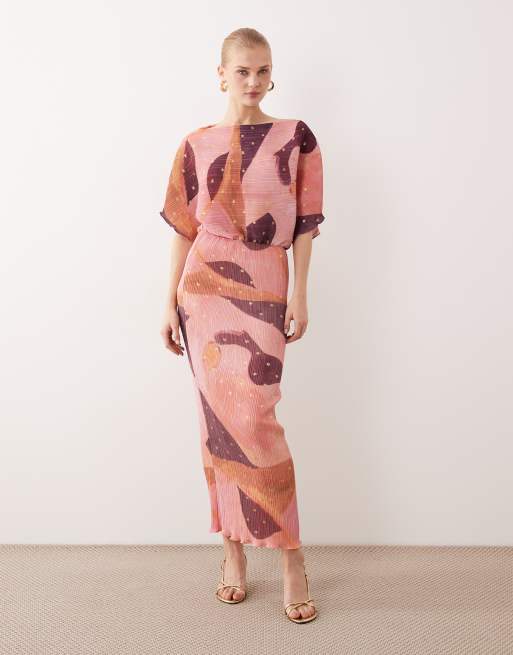 Never Fully Dressed - Tilly - Vestito plissé con spalle scoperte e gonna al polpaccio rosa a pois metallizzati