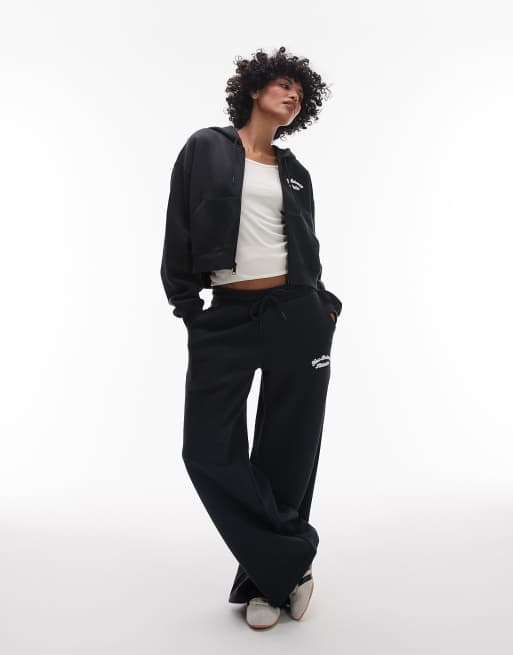 New Balance - Joggers con fondo ampio e felpa con cappuccio in pile nero