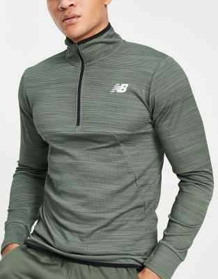 New Balance - Tenacity - Top verde kaki con zip corta