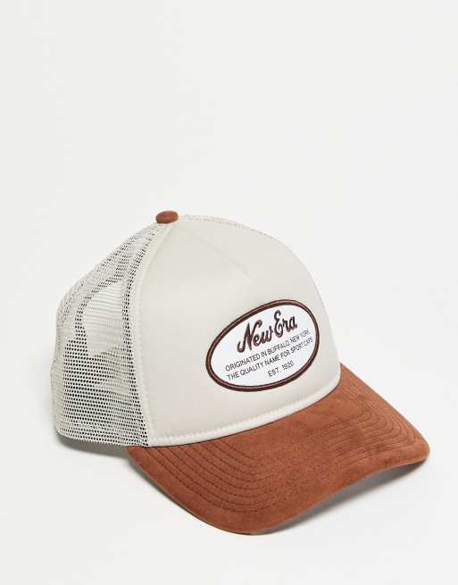 New Era - Cappellino beige con visiera a contrasto in camoscio marrone con toppa ovale con logo