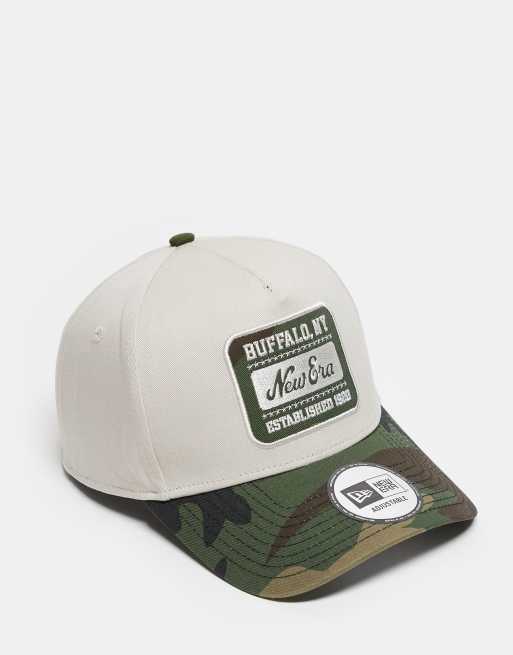 New Era - Cappellino beige con visiera a contrasto mimetica, applicazione mimetica con logo e lettera E