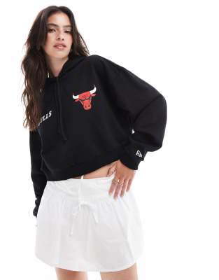New Era - Felpa corta nera con cappuccio e stampa dei Chicago Bulls