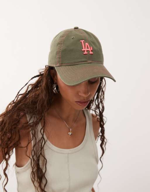 New Era - LA Dodgers 9twenty - Cappellino kaki con cuciture rosa a contrasto