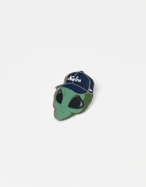 New Era - Spilla in metallo argentata a forma di alieno con cappello
