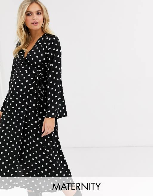 New Look Maternity - Vestito a portafoglio nero a pois con maniche lunghe