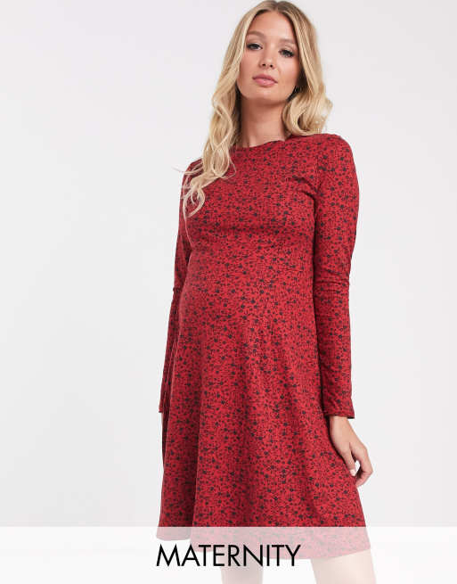New Look Maternity - Vestito grembiule rosso a fiorellini