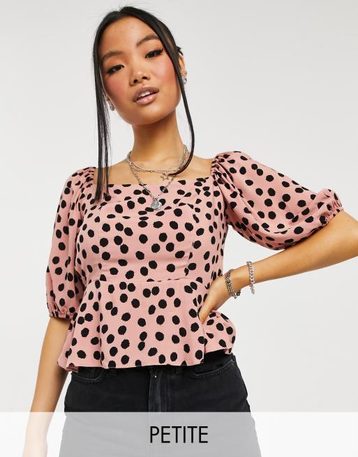 New Look Petite - Top con scollo squadrato a pois rosa
