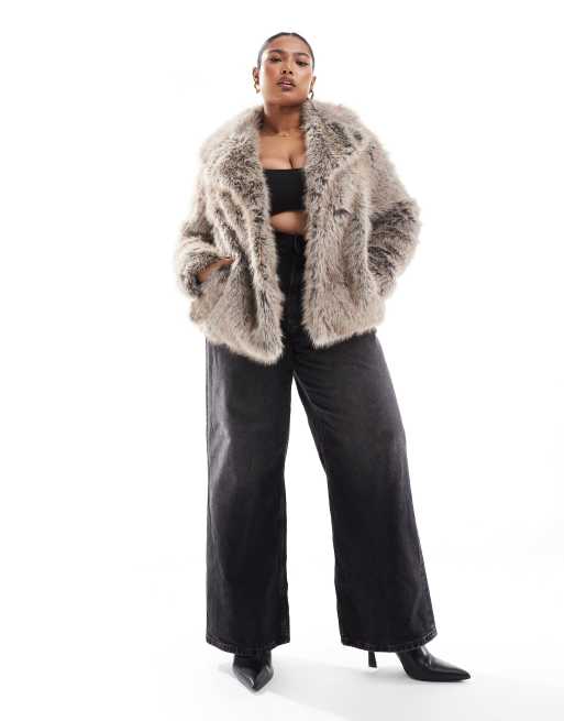 New Look Curve - Cappotto in pelliccia sintetica grigio