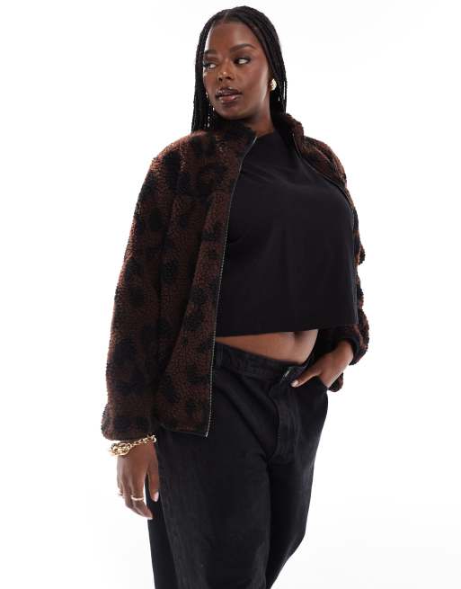 New Look Curve - Giacca in pile borg con stampa leopardata