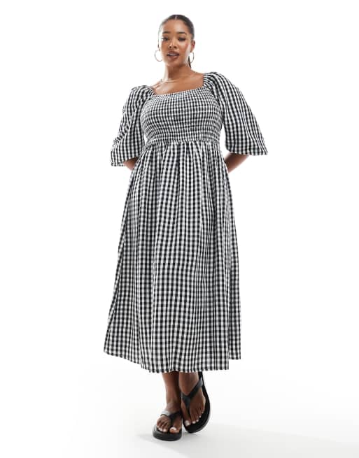 New Look Curve - Vestito midi a maniche lunghe nero a quadretti