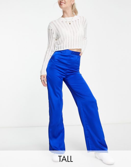 New Look Tall - Pantaloni con fondo ampio in raso blu acceso in coordinato